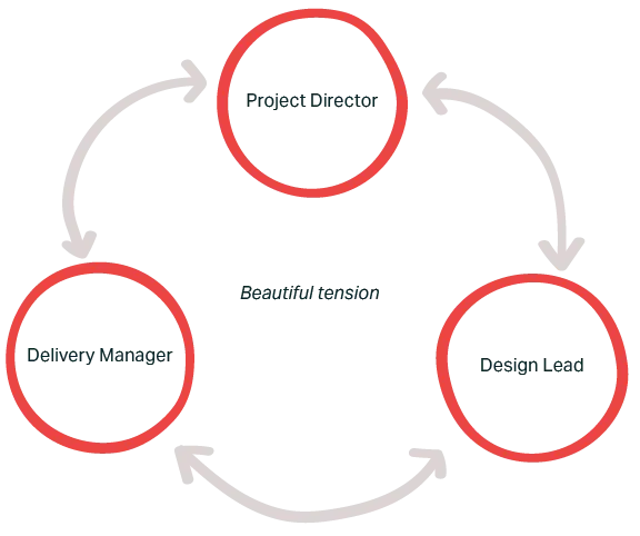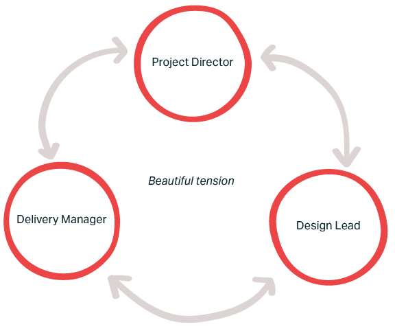 Mine was a formal Project Director role, sitting above design and delivery while remaining closely involved in shaping decisions. Alongside the Design Lead and Delivery Manager, I formed part of the Project Leadership Team — holding the tension between user needs, policy intent, technical feasibility, and delivery realities.
