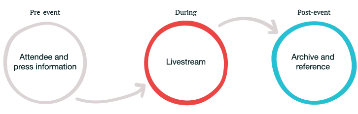 Before the event the site’s main role was to meet the needs of invitees, giving information on the event, travel, accommodation and other FAQs. As well as this, the team were drumming up media interest with the press, which directed journalists to the website as a hub for information.