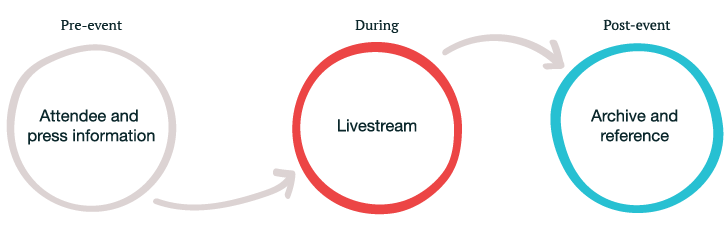 Before the event the site’s main role was to meet the needs of invitees, giving information on the event, travel, accommodation and other FAQs. As well as this, the team were drumming up media interest with the press, which directed journalists to the website as a hub for information.