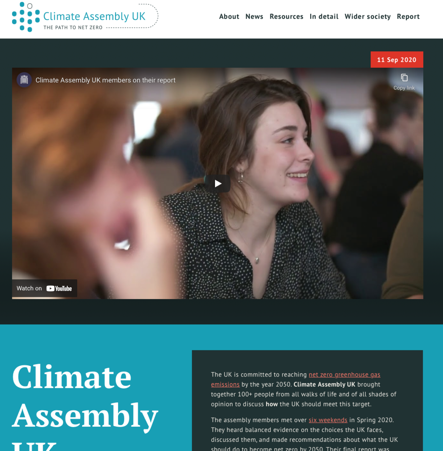 The climate assembly was an event, in happened at a time and a place, and the website’s job was to immortalise the proceedings so that people in the future could understand the event, see decisions that were made, and reference the outcomes in newspaper articles, research papers and events inspired by the assembly.
